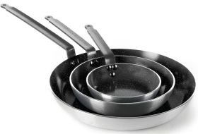 – Αντικολλητική κεραμική επίστρωση ‘Marble’, ιδιαίτερα ανθεκτική σε υψηλές θερμοκρασίες (μέχρι 260°C). Τριπλή επίστρωση καθιστά τα σκεύη ανθεκτικά στη φθορά.