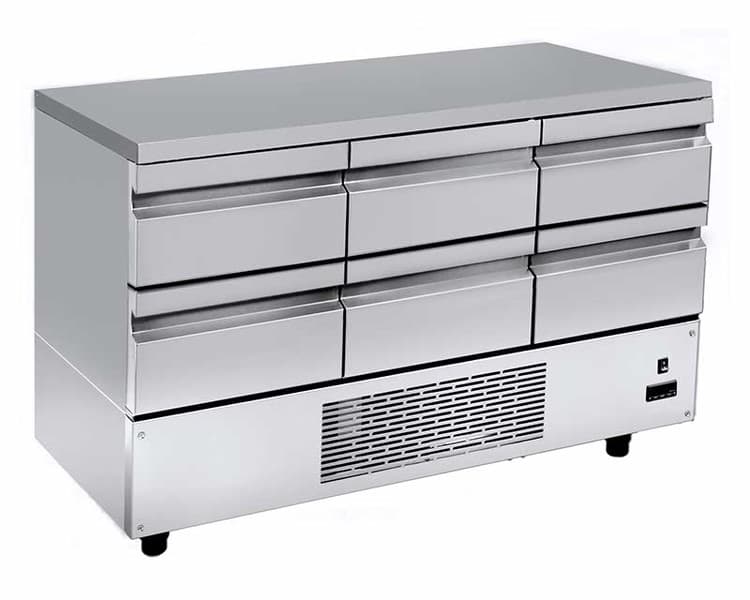 Ψυγείο πάγκος συντήρηση 134x70x88 με 6 συρτάρια και ψυκτικό μηχάνημα στην βάση NikiInox PA GN 134KS