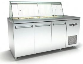 Ψυγείο - Βιτρίνα Σαλατών 180x60x126 με 3 Πόρτες GN και Ψυκτικό Μηχάνημα Δεξιά PSM18060.1SALAD DBR