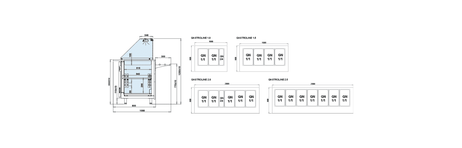 Βιτρίνα ψυχόμενη 200x80x1250cm 5GN 1/1 & 2GN2/4 DOMI SNACK GASTROLINE ECO 2.0