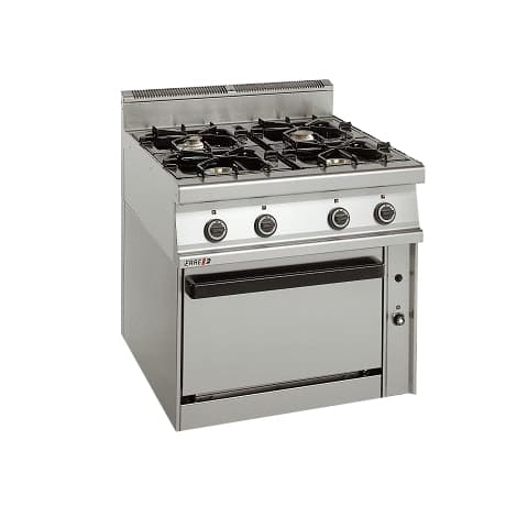 Στο πάνω μέρος της φέρει τέσσερις ανοικτές εστίες αερίου ισχύος 5,2 KW έκαστη.
