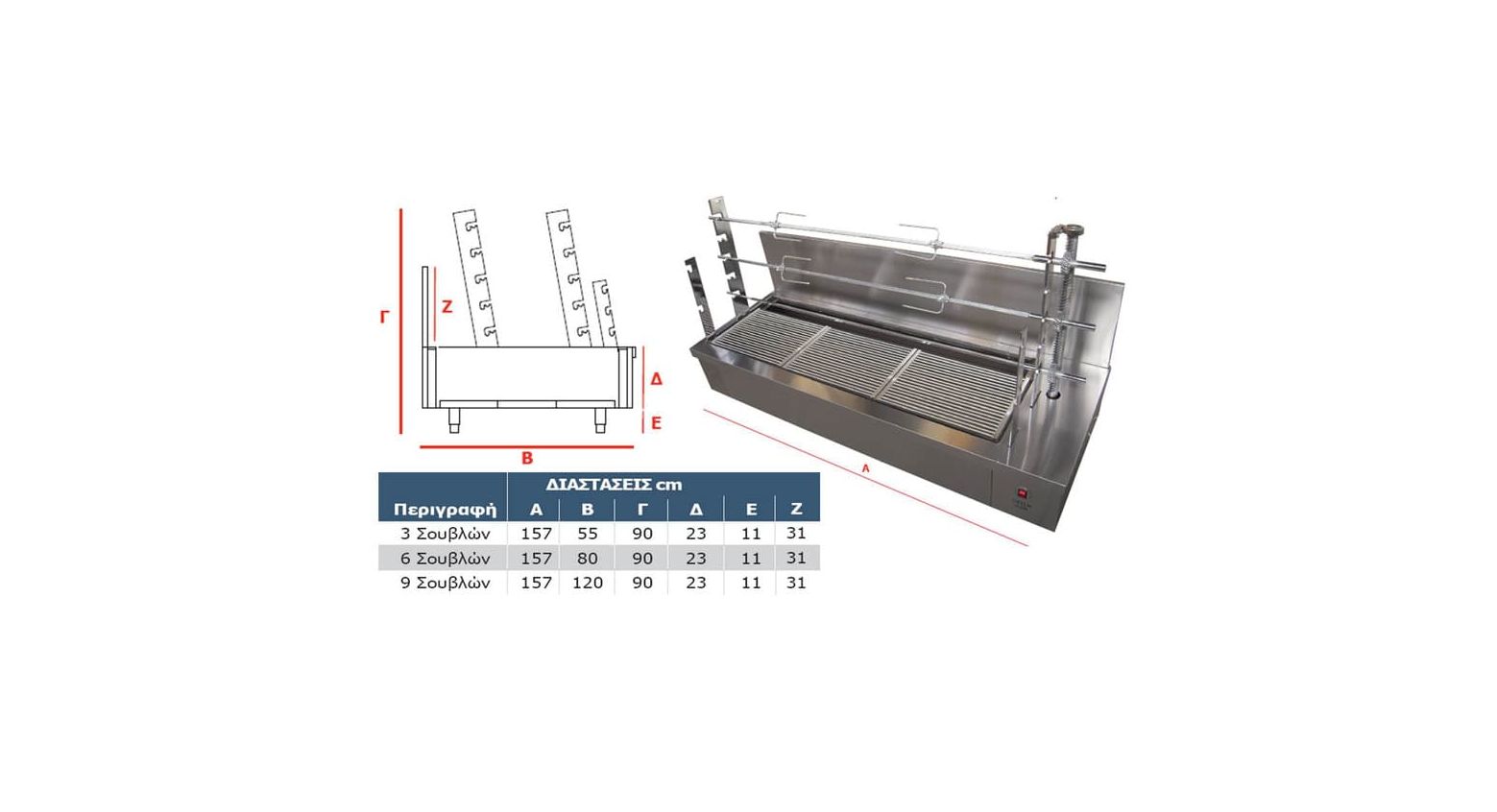 Ο τύπος AISI 304 εχει inox σούβλες και σχάρες.