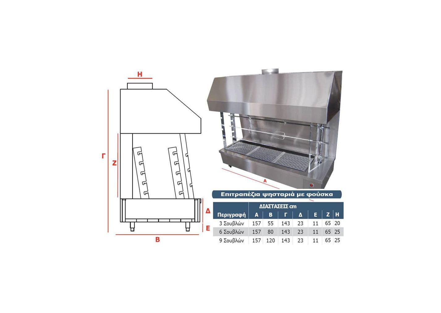 Ο τύπος AISI 304 εχει inox σούβλες και σχάρες.